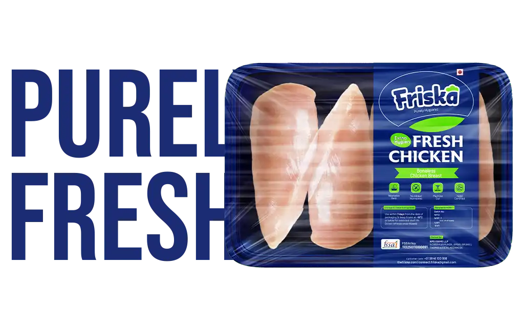 At Friska, freshness and hygiene are essentials, not preferences. From trusted farms to advanced processing units, we follow strict hygiene standards at every stage — cleaning, cutting, packaging, and delivery. Our chicken is purely washed, machine-cut, hormone-free, and Halal-certified, ensuring it’s always safe, tender, and natural. With consistent temperature control and professional handling, Friska delivers the most hygienic chicken in Kerala, bringing you premium-quality, clean, and Perfectly Fresh meat your family can trust.